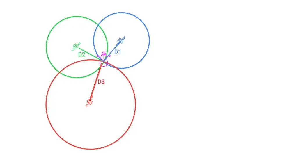 All the navigation satellites have accurate atomic clocks and they transmit signals which include the time and position. These signals are then picked up by receivers. All smart phones and GPS devices have a GPS receiver in them. These receivers calculate the distance from the satellite by comparing the time at which it received the signal and time the signal was transmitted by the satellite. If the satellite is further away it would take more time to reach earth. The GPS receiver then combines the data from multiple satellite sources to calculate or lock its location. This process is called trilateration. An example of this is shown in the picture above. The example in the picture shows how with 3 satellites you can detect a point on a two dimensional picture. The receiver needs at least 4 satellites to calculate latitude, longitude, altitude and time. The signals from satellites can be affected by clouds, solar flares, buildings etc. You may have noticed that you cannot catch GPS when you are indoors or in a basement. On the other hand, GPS locks their location in the open more quickly and accurately than indoors. If the receiver can detect the signals from more satellites, the location is more accurate. Modern receivers combine data from multiple satellite systems for e.g. GPS and Galileo to get a more accurate and faster lock.