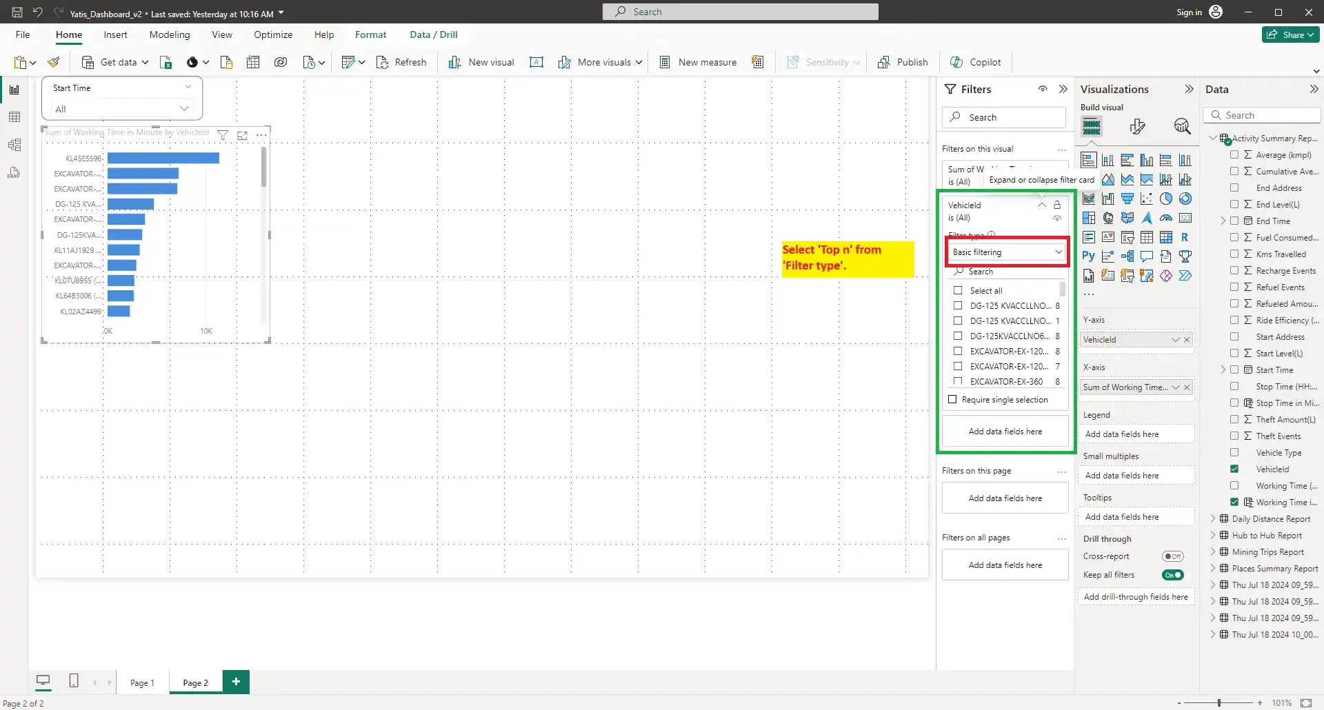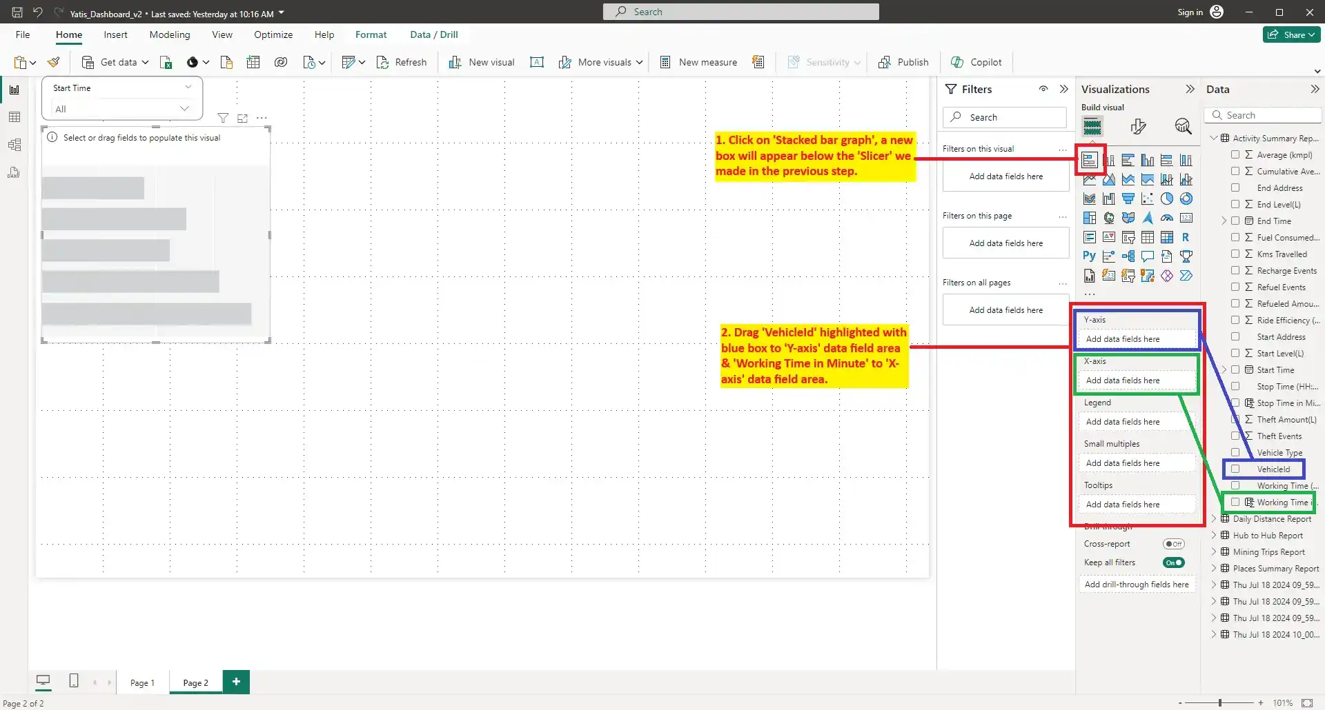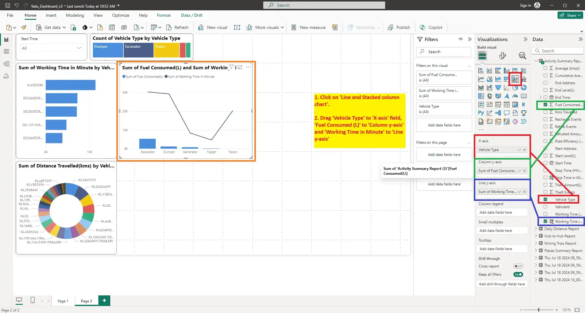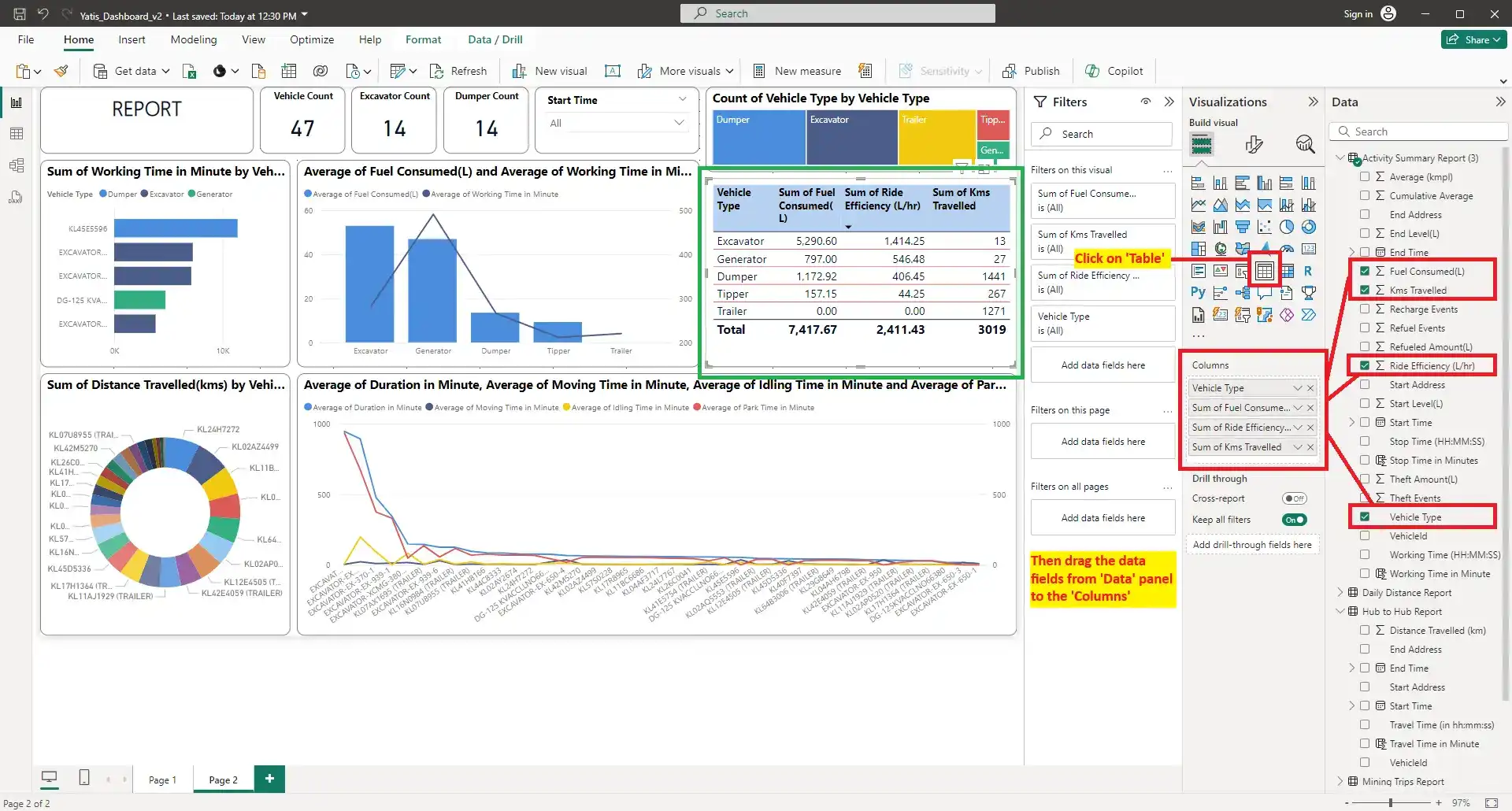 By adding a text box for the report name, cards for vehicle counts, and a detailed table, your Power BI report becomes a comprehensive and interactive tool for analyzing vehicle data.